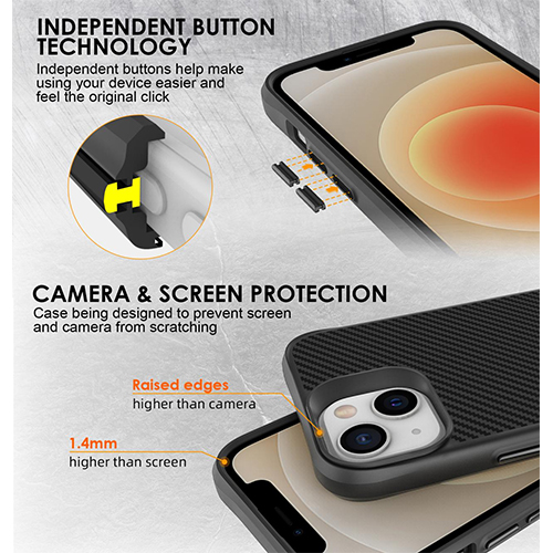 3).Mbrojtje për thithjen e goditjeve dhe rënies: Dizajni hibrid i TPU-së që thith goditjet dhe PC-ja e pasme ofrojnë mbrojtje të mirë për pajisjen tuaj; Skajet e ngritura heqin ekranin dhe lentet e kamerës nga sipërfaqja për të shmangur gërvishtjet dhe dëmtimet.